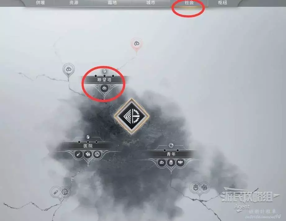 然後在思維樹的社會一欄,研究瞭望塔並建造瞭望塔。