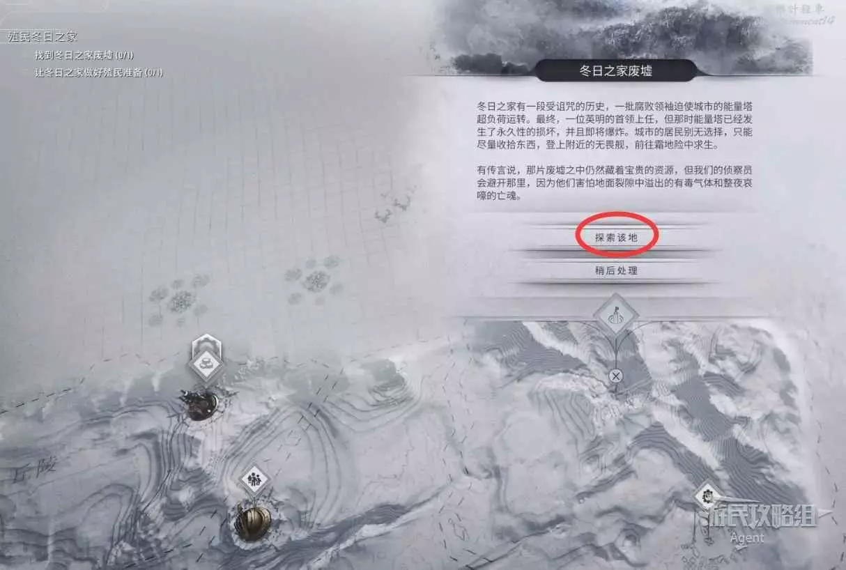 待風暴逐漸退去,派霜地團隊去東面探索詛咒之地,就能發現冬日之家廢墟。
