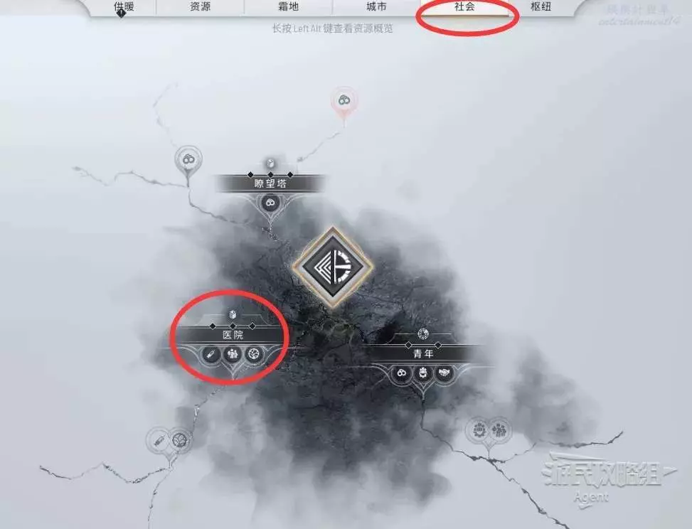 按左ALT顯示地圖上的各種資源,不同類型的建築也會以顏色區分。