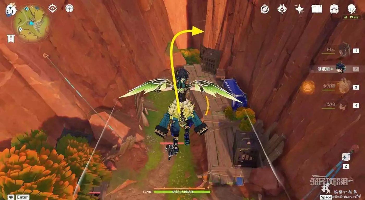 前往祖遺廟宇東北邊傳送錨點,然後往東走,往下跳入峽谷。