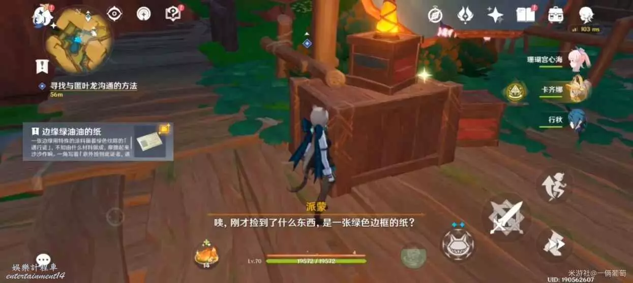 先來彩石頂的中空洞穴貨箱,拿取「邊緣綠油油的紙*1」。(道具隨機,哪裡拿無所謂)