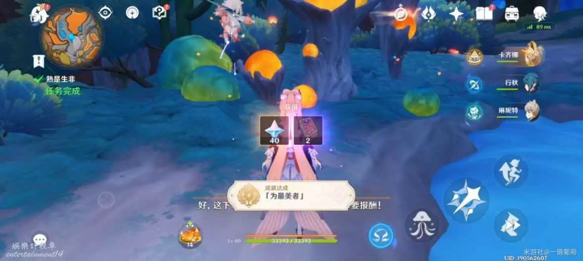 回那棵大樹下找到波卡對話,獲得2w摩拉。