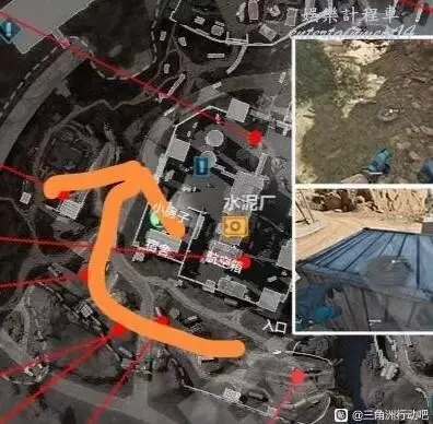 說完軍營以後,我們來說下方,如果你在軍營跟水泥廠中間,就是軍營下方復活的話,你直接去軍營的話,有幾率遇到人,遇到人就死,也是沒有什麼問題的,往下走。非常不推薦,因為下面是必刷一隊的。如果你在下面復活的話,請首先記住,上面也是必刷一對的,可能離你非常遠,但是是必刷的,刷在側面。我們第一要務就是從水泥廠的右下方,注意是下方,不是右方,直接踹開那個門進去開鑰匙房。