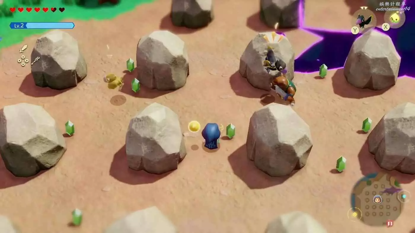 割草有幾率掉落紅心和盧比,建議在探索地圖時,只要看到草地就按R鍵一邊移動一邊割草。