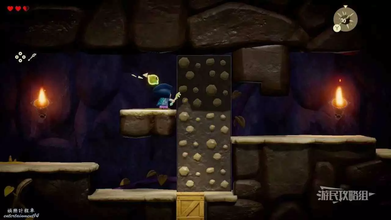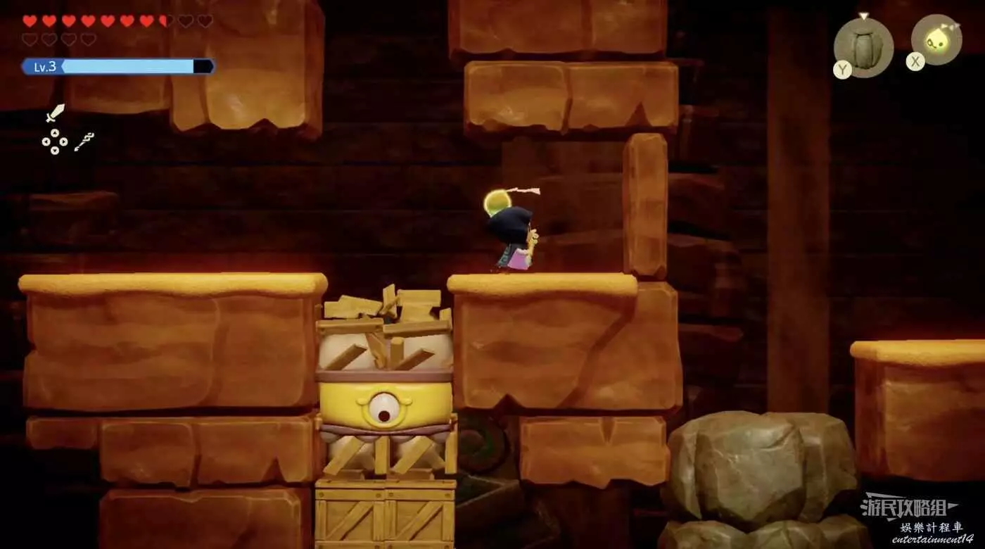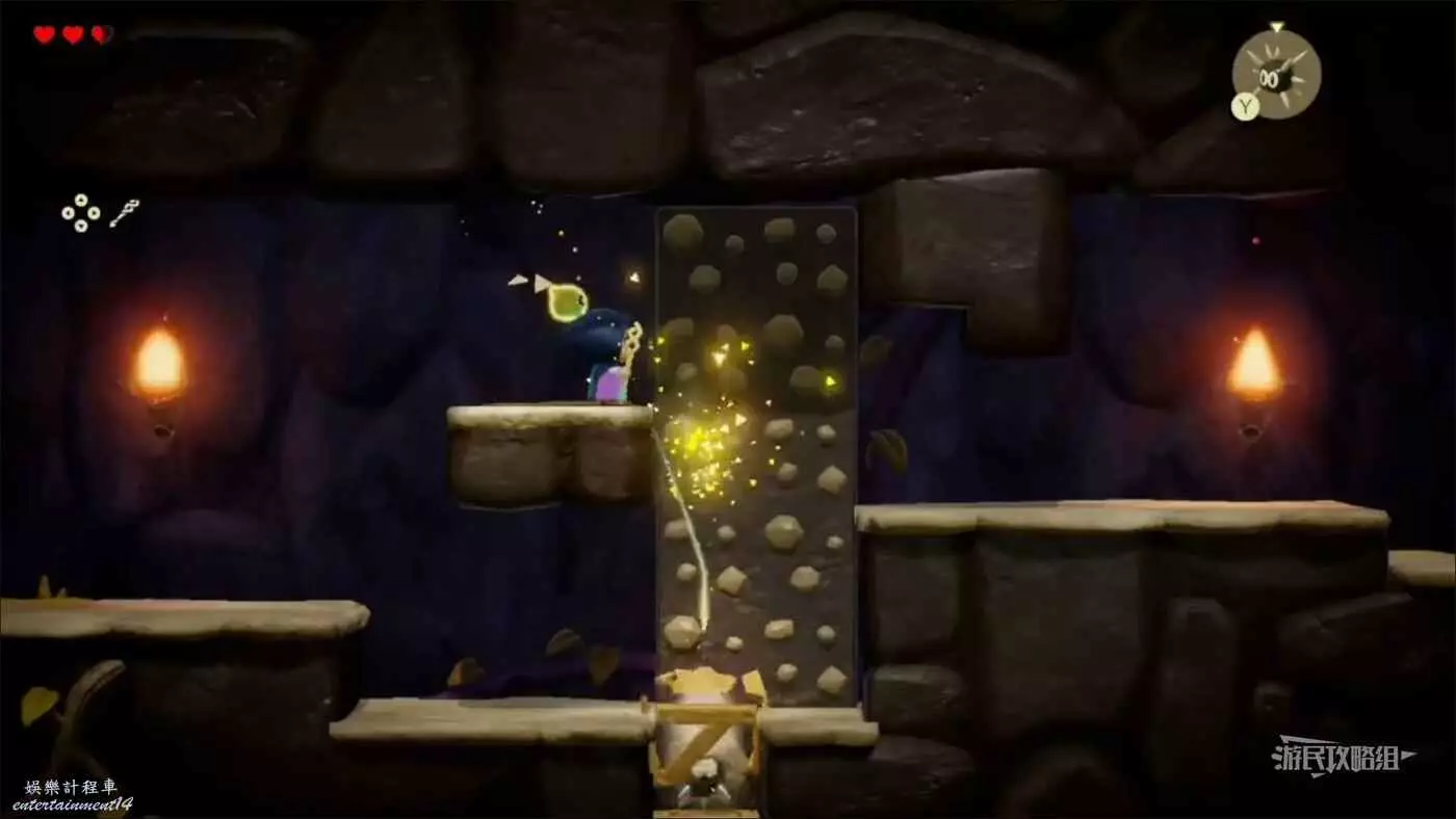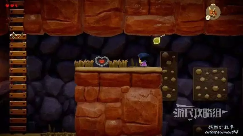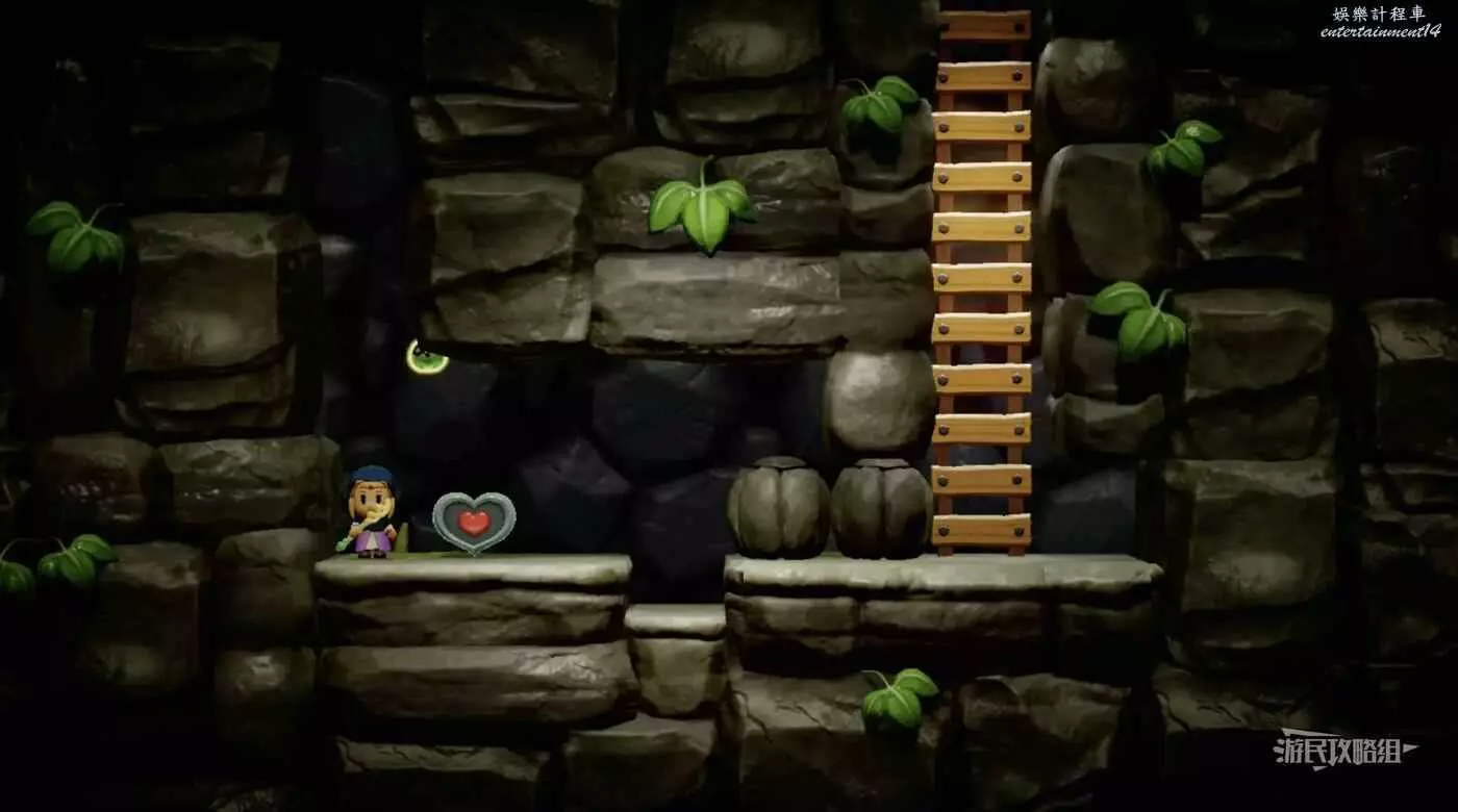 進入米諾米諾村東邊洞窟,需要複製品【邦吉羅】。用邦吉羅打碎擋路的箱子,爬上岩壁到達左上方平台即可拾取心之碎片。