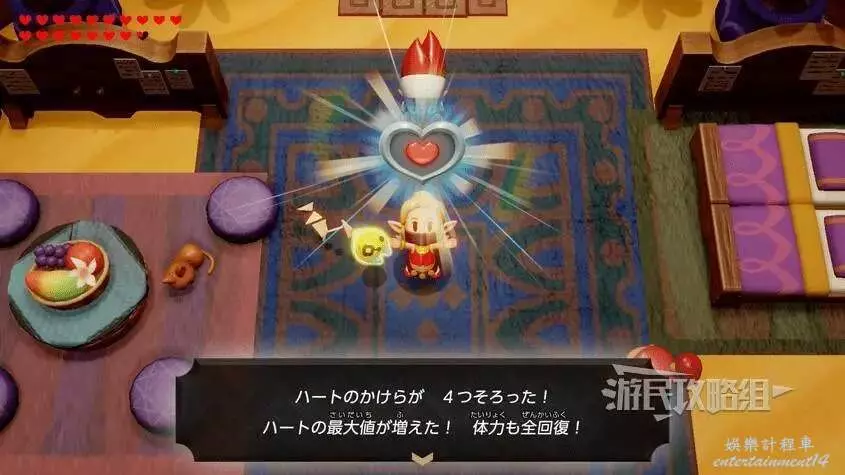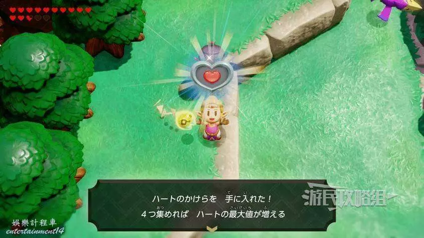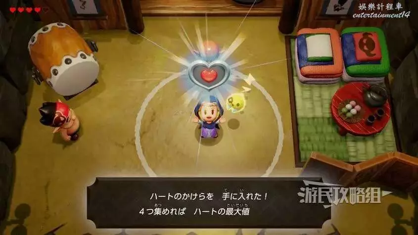 收集4個心之碎片就能合成1顆完整的紅心,在拾取心之碎片時也會將當前紅心全部回滿。