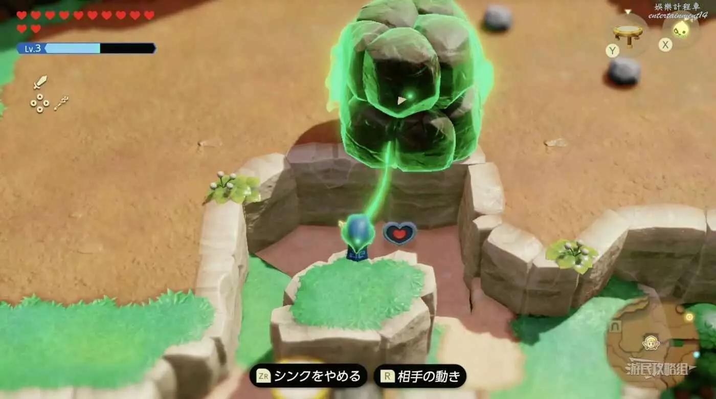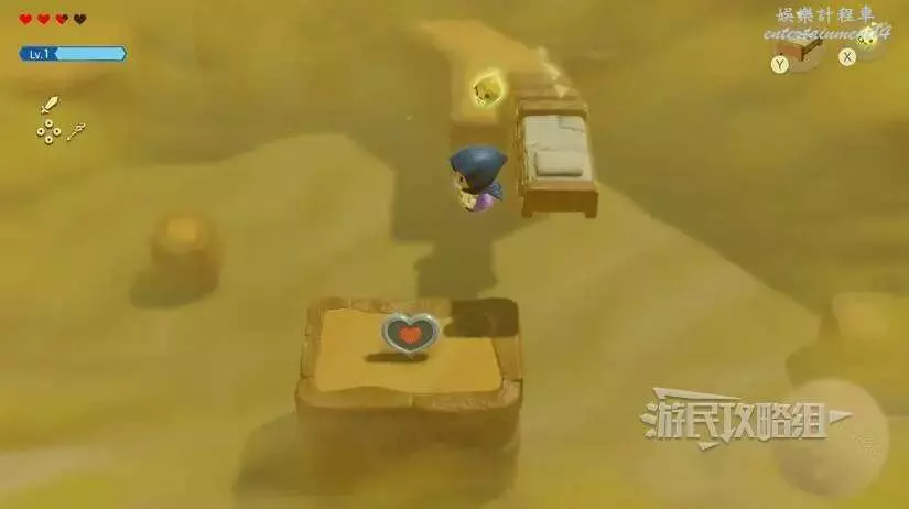 使用跳床往格魯德沙漠西南方向前進,使用送風機吹走沙子即可看到心之碎片。