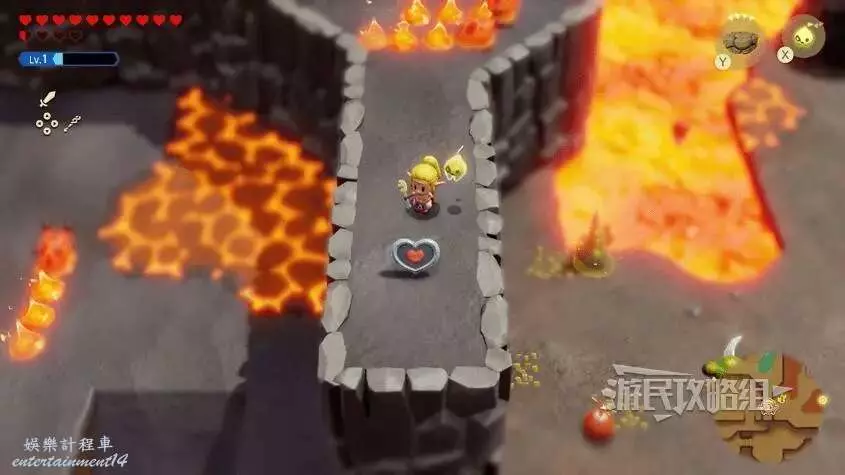 參考上文地圖標記位置,前往奧爾汀火山懸崖上方,然後利用浮熔岩穿過岩漿,走到灰色平台盡頭拾取心之碎片。