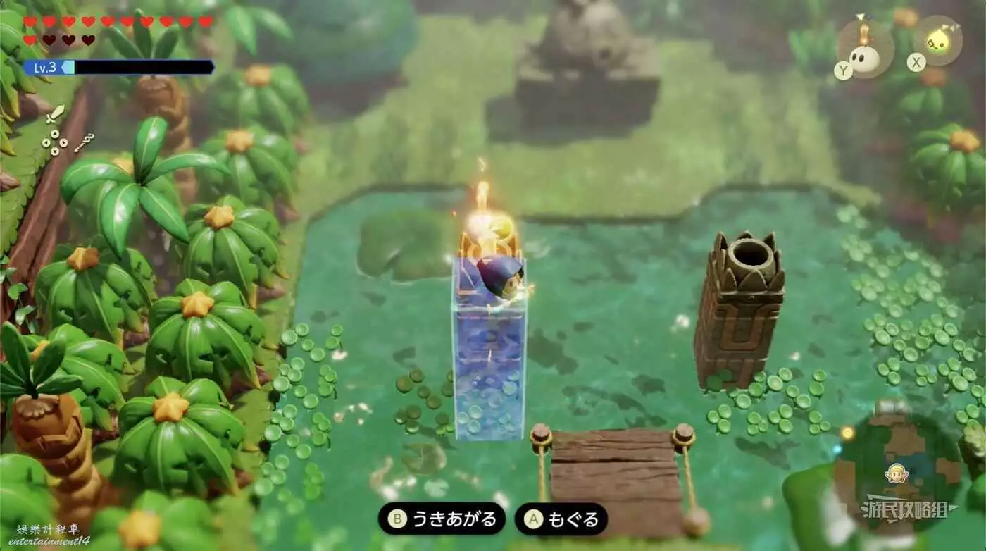 沿路走爬上較高的平台,需要使用複製品【海膽】。