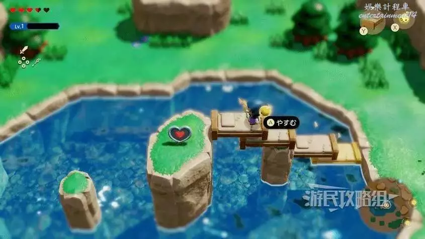 前往海拉魯平原西邊的水池,需要複製品【老舊的床】,把床鋪擺成階梯狀,到達高台上拾取心之碎片即可。