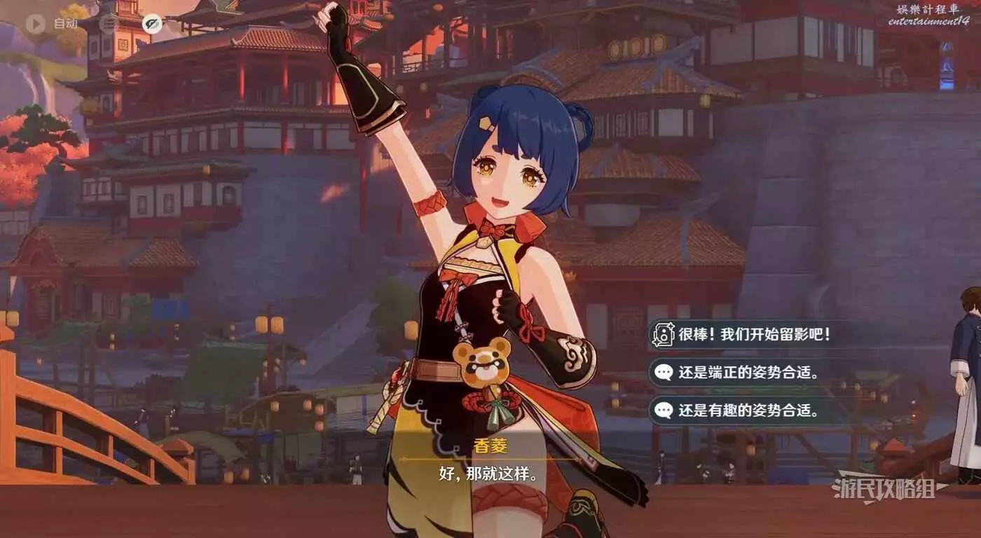 與香菱對話,為香菱挑選適合的姿勢,選擇之後還可以通過對話選項切換其他姿勢。選擇好之後點擊【很棒!我們開始留影吧!】。