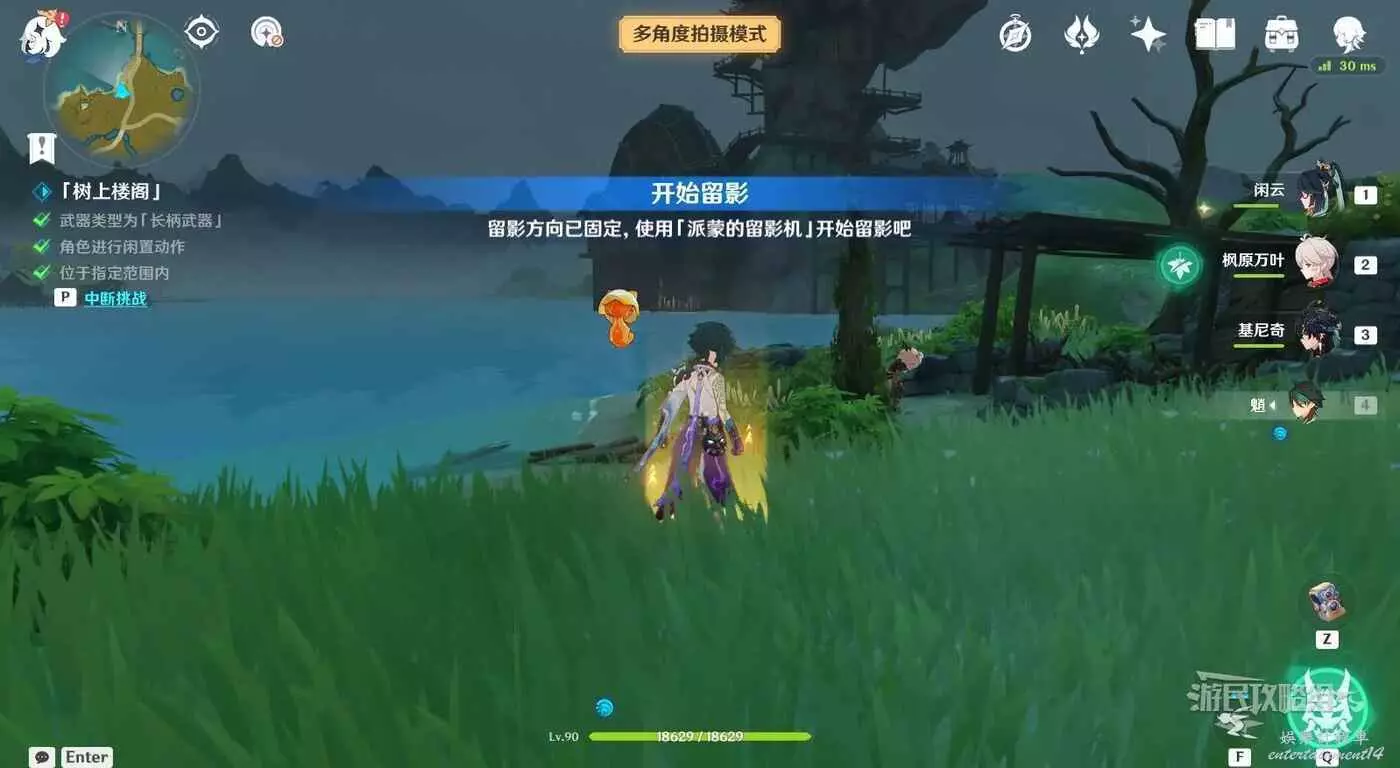 切換一名使用長柄武器的角色,進入黃圈範圍,等待角色進行閒置動作時即可拍照。