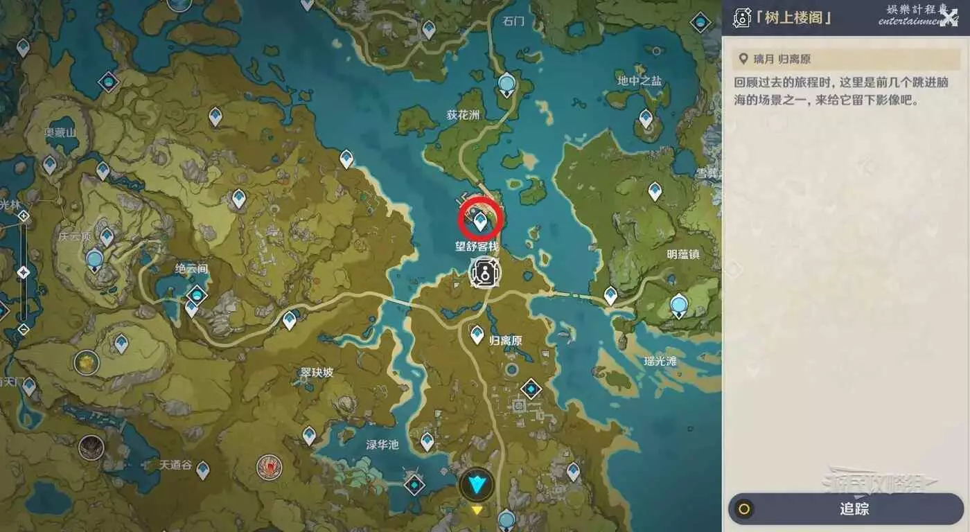 第四個留影點位於璃月望舒客棧下方,傳送到望舒客棧中的傳送錨點前往留影位置。