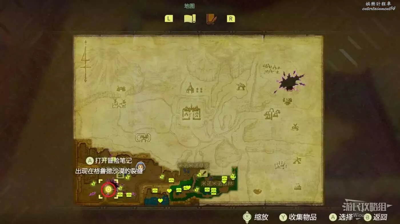 往左下角的黃點走,進入巨大縫隙左邊的機關洞窟。