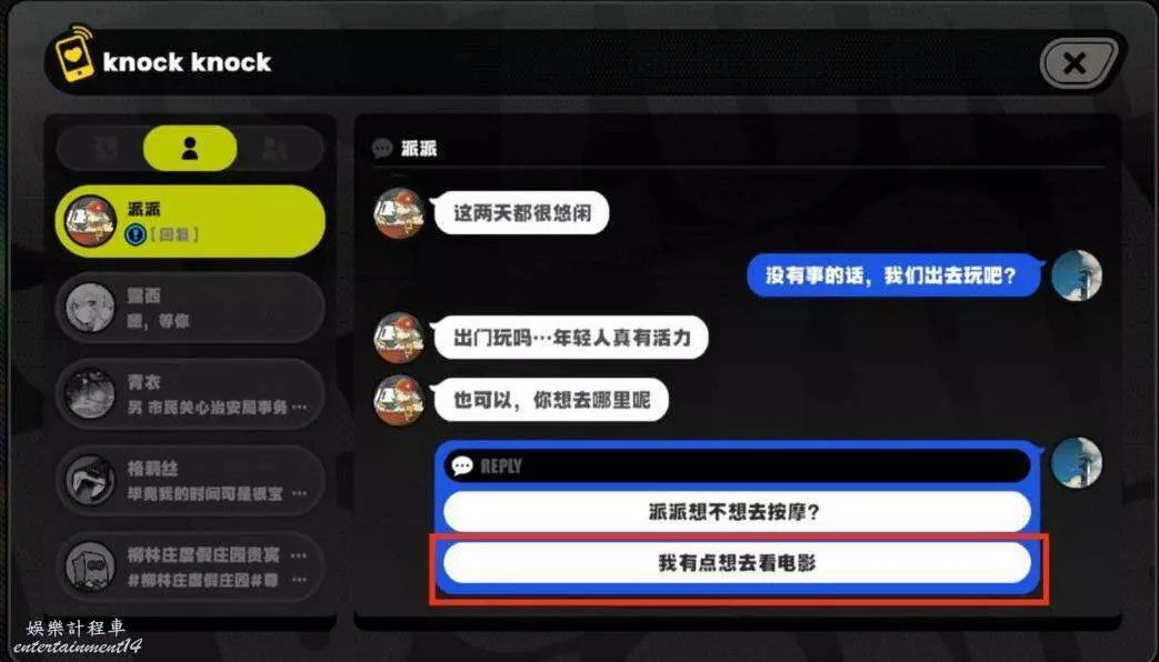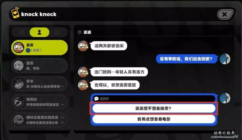邀約1.選擇“派派想不想去按摩?”