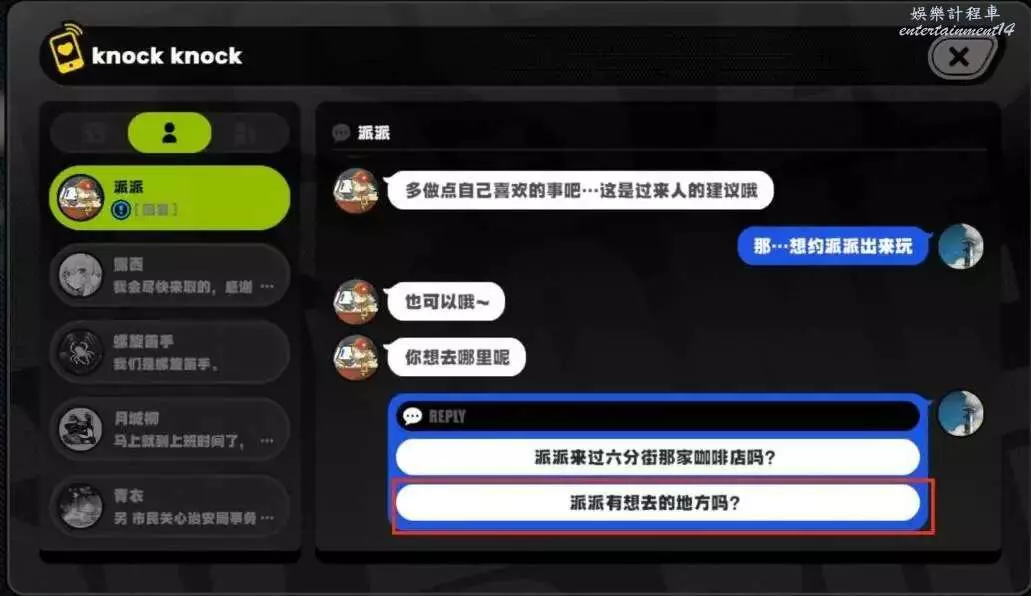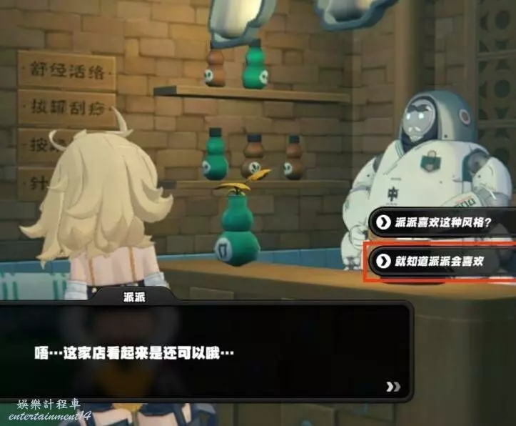 隨著對話,我們選擇“就知道派派會喜歡”,好感度增加,其他選項不確定。
