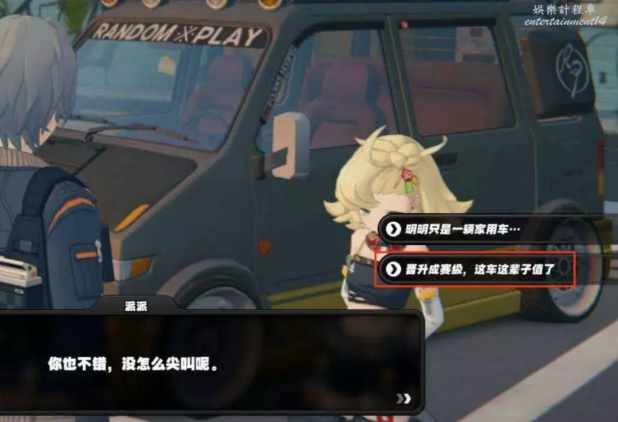 隨著對話,你也不錯,沒怎麼尖叫呢,選擇第二個選項,“晉升成賽級,這車這輩子值了”,好感度增加。