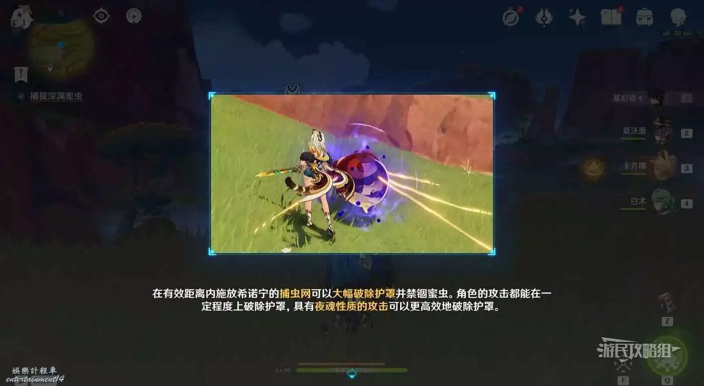 攢滿捕蟲網充能後,即可準備使用捕蟲網,捕蟲網可以大幅削減護罩值,除此之外其他任何攻擊都能在一定程度上對護罩造成傷害,具有夜魂性質的攻擊破除護罩會比普攻更加高效。