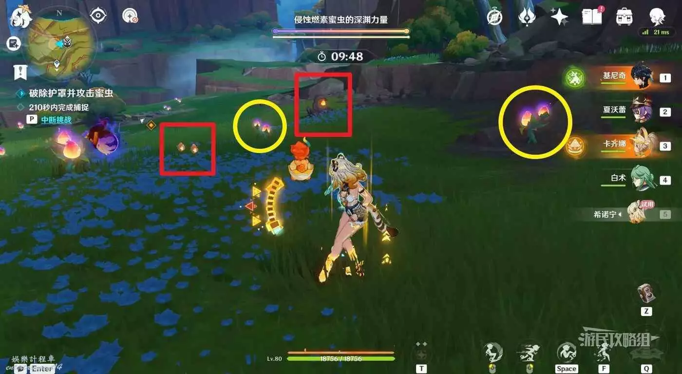 唯一需要注意的是,捕捉蜜蟲期間,無論是對於護罩還是破除護罩後的蜜蟲本體,傷害數值都不重要,對蜜蟲造成的傷害只與攻擊次數相關,對攻擊原本造成的傷害無關。