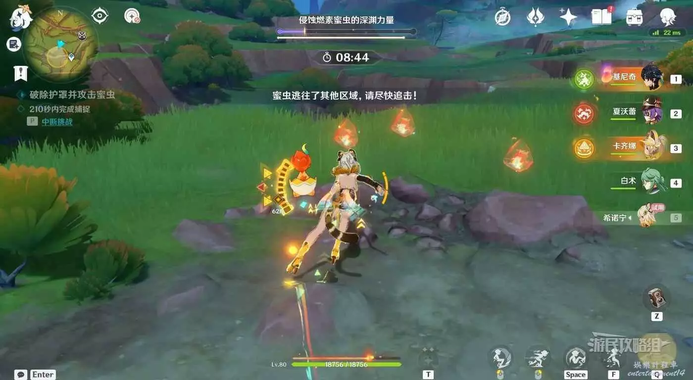 重複之前的步驟破除蜜蟲護罩並使用常規攻擊將蜜蟲擊敗即可完成捕捉。