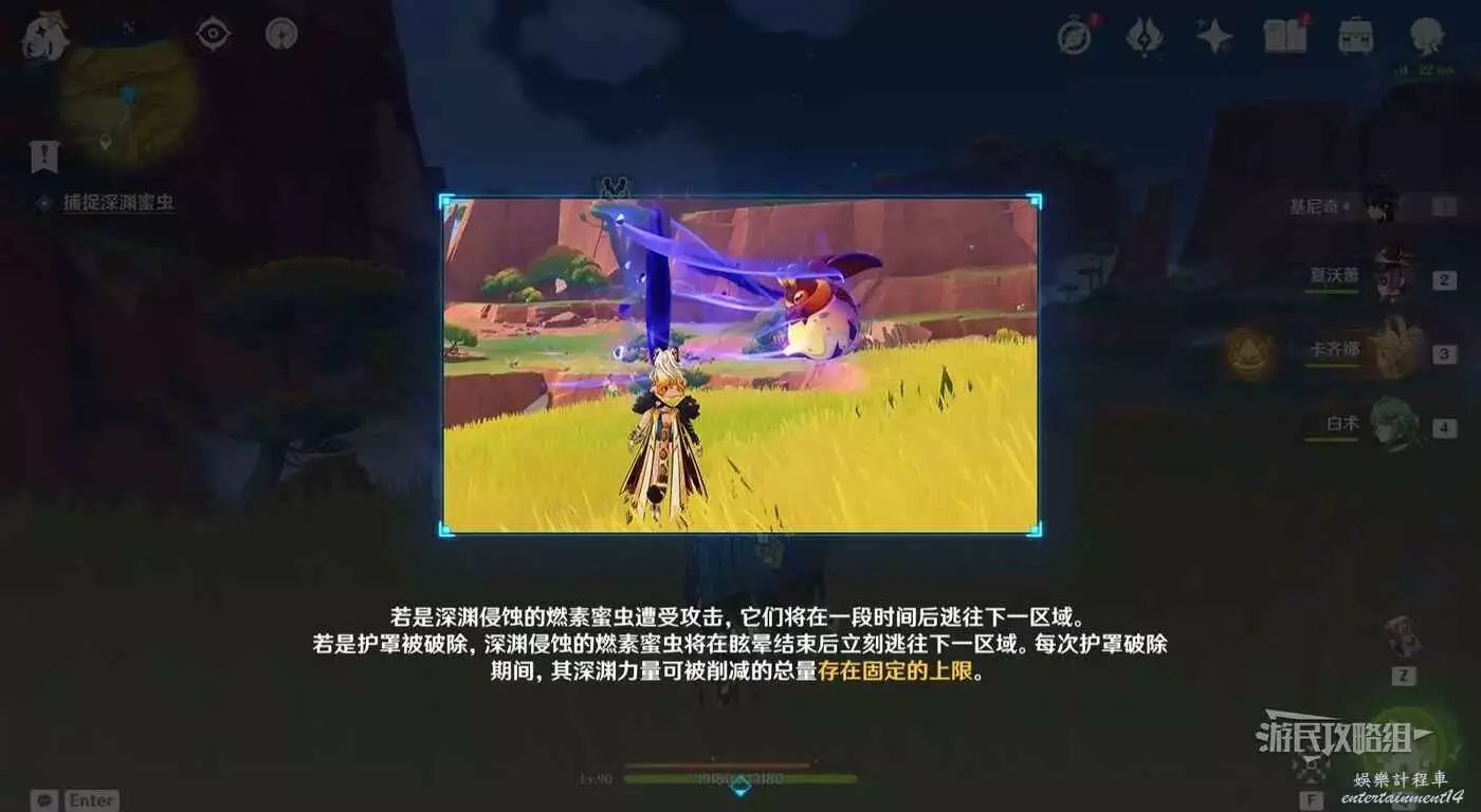 與挑戰底座互動開始捕捉深淵蜜蟲,觸發系統教學。捕捉完畢後即可完成此任務。