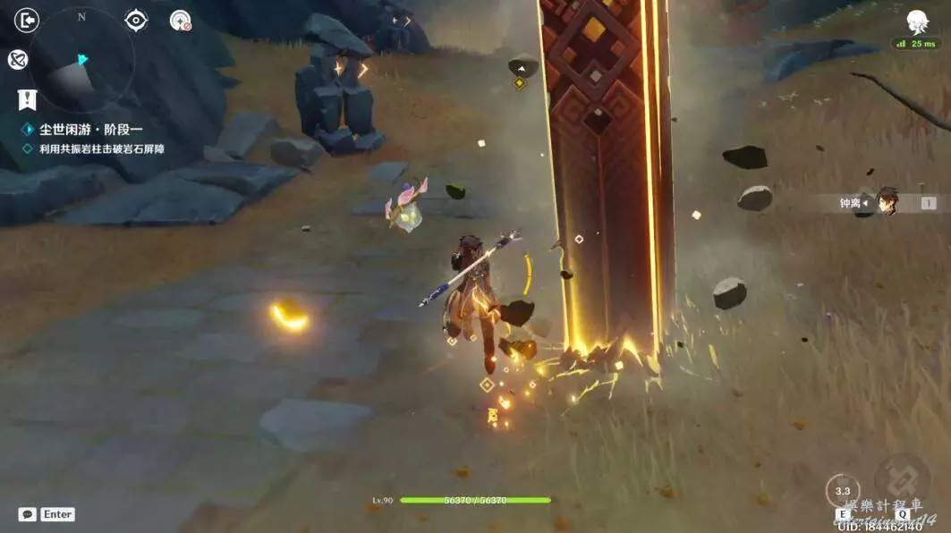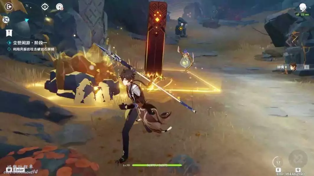 利用地星技能(短E)技能震擊共振岩柱。打開岩石屏障。在這裡只用放三次短E。(使用長E也可以觸發振動波,但比這個方法要麻煩在此不做推薦)