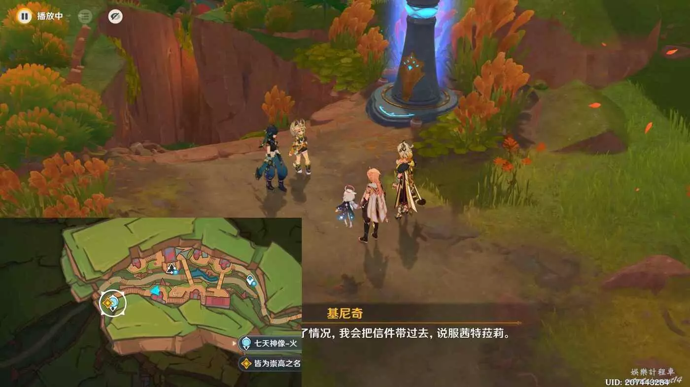 傳送「回聲之子」神像,與基尼奇對話1分鐘