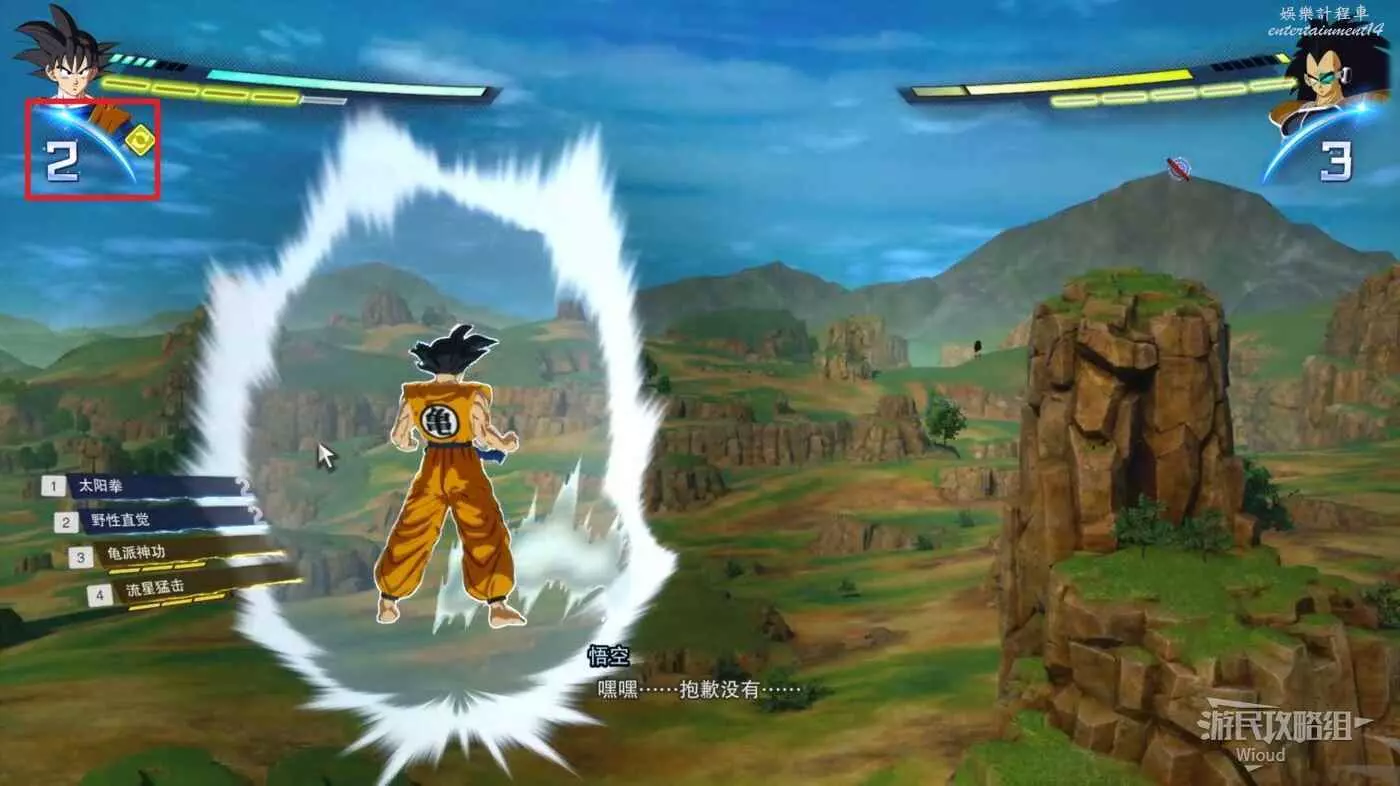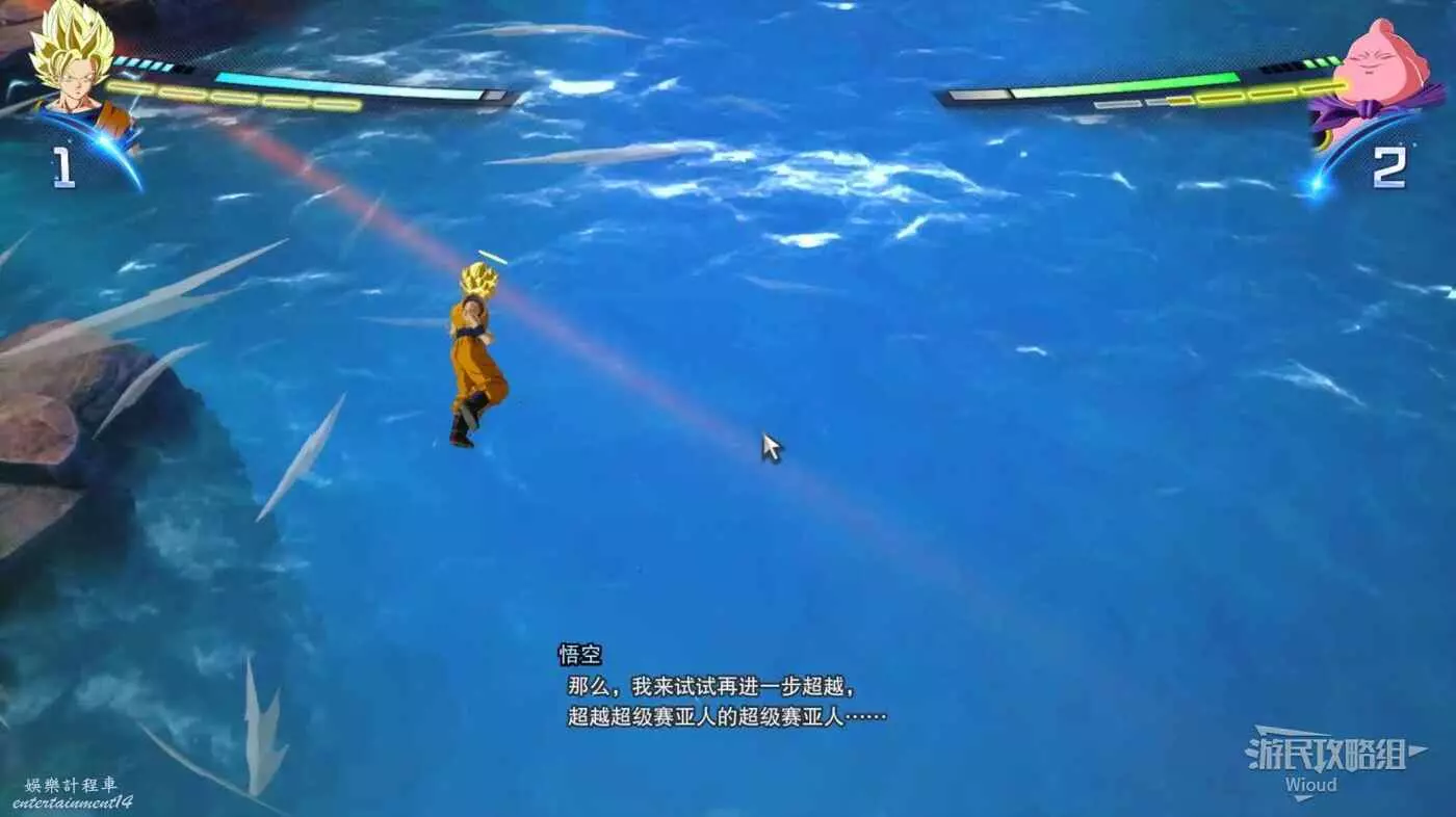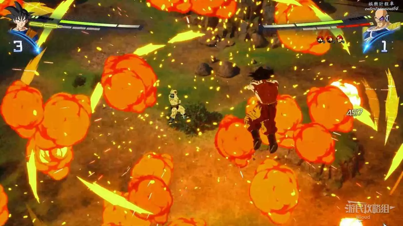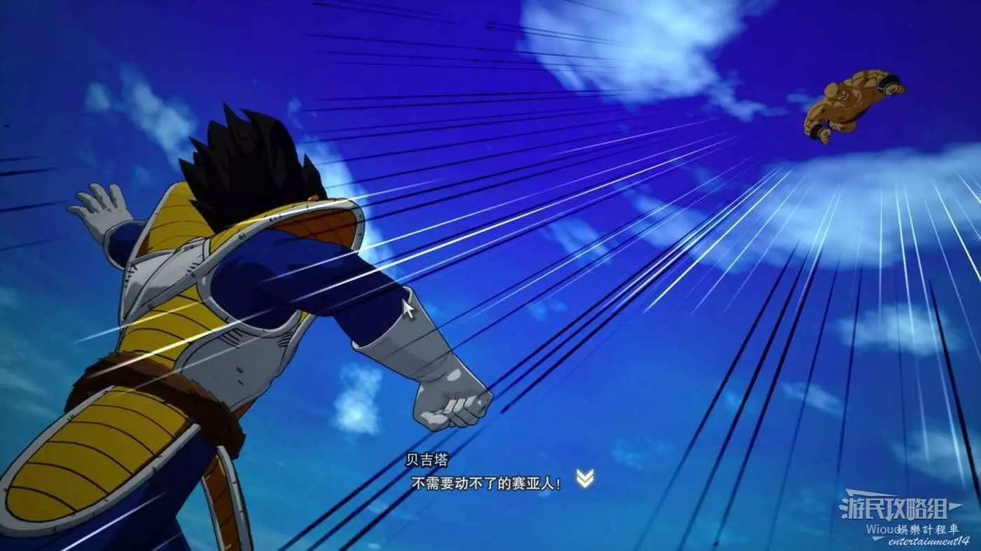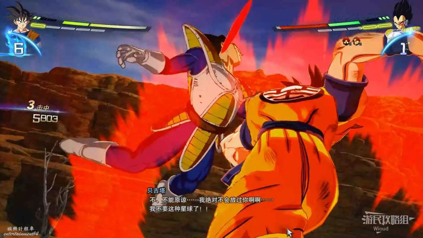 本場戰鬥的敵人是貝吉塔,也是前期難度最高的戰鬥,其快速的出招與讀指令的防禦和抓取也讓我們難以完成一段完整的聚氣。