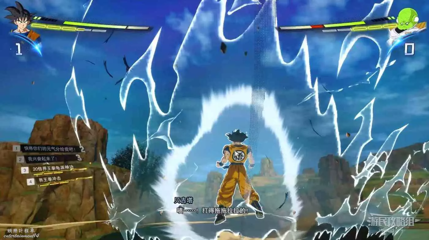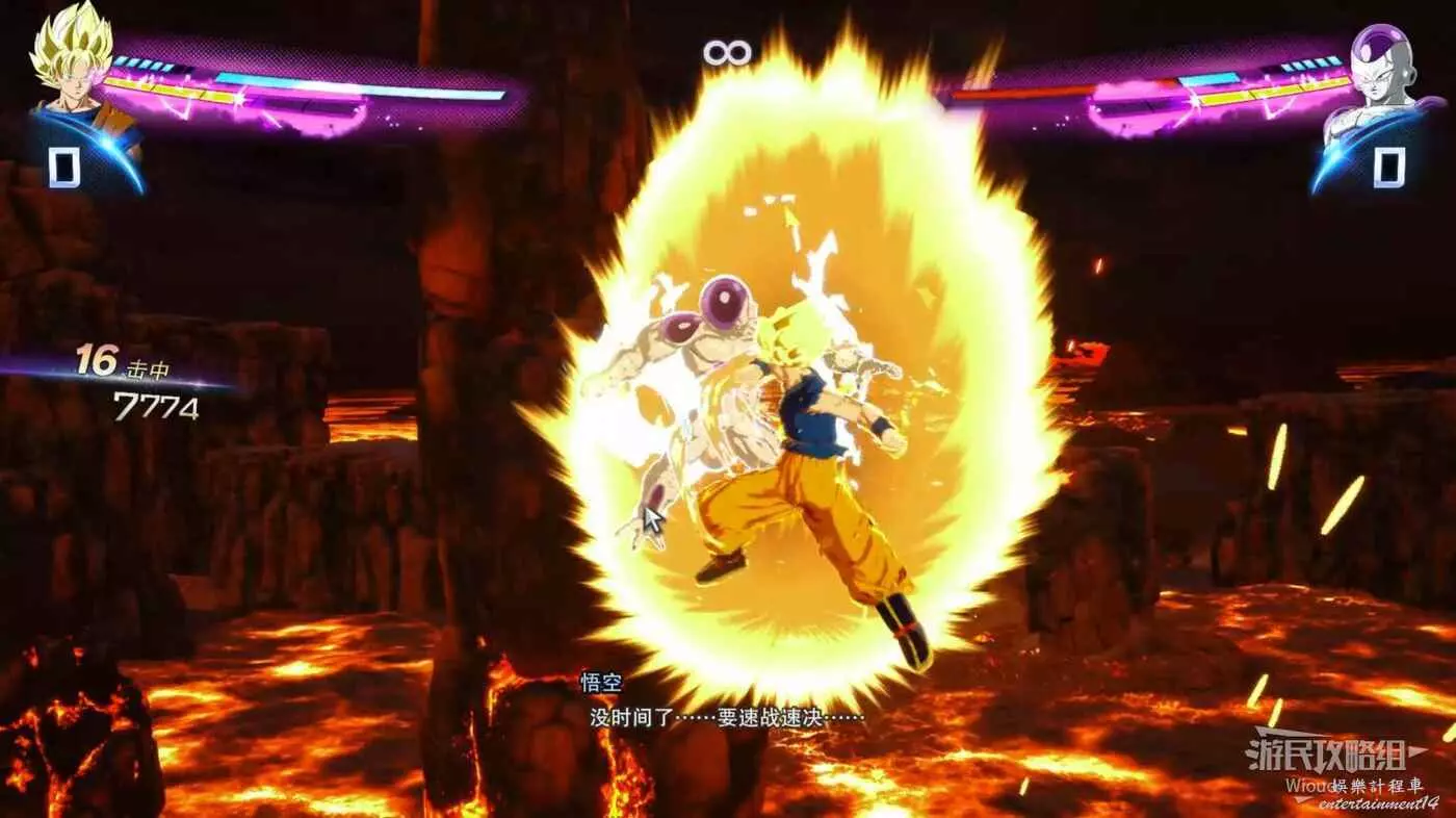 這時候戰鬥就沒什麼難度了,開局就是爆氣狀態,直接無腦衝刺到弗利薩旁邊開始無限普攻,爆氣狀態結束就用流星猛擊抓取弗利薩,然後利用命中後搖原地聚氣再次進入爆氣狀態繼續普攻,重複這個過程即可。