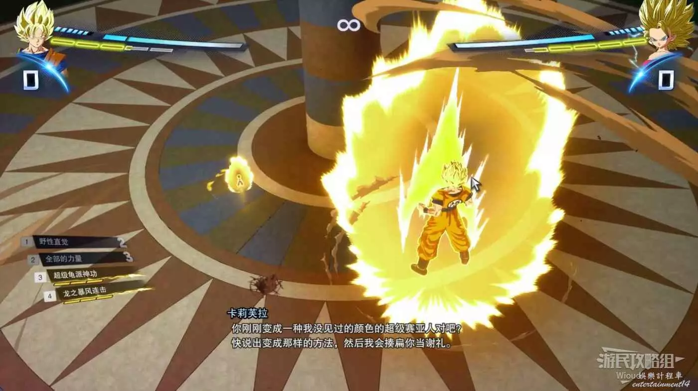 戰鬥中間悟空會回到普通狀態,這時直接進入爆氣階段向吉蓮釋放元氣彈進入下一個階段。