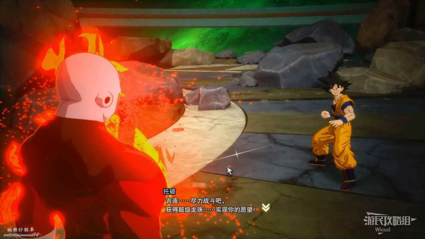 本場戰鬥悟空需要先以超級賽亞人之神的超級賽亞人模式與吉蓮打第一回合,隨後過完劇情會直接進入自在極意功模式與吉蓮戰鬥,這兩場戰鬥基本都是非常厲害的模式,因此戰鬥難度不高。