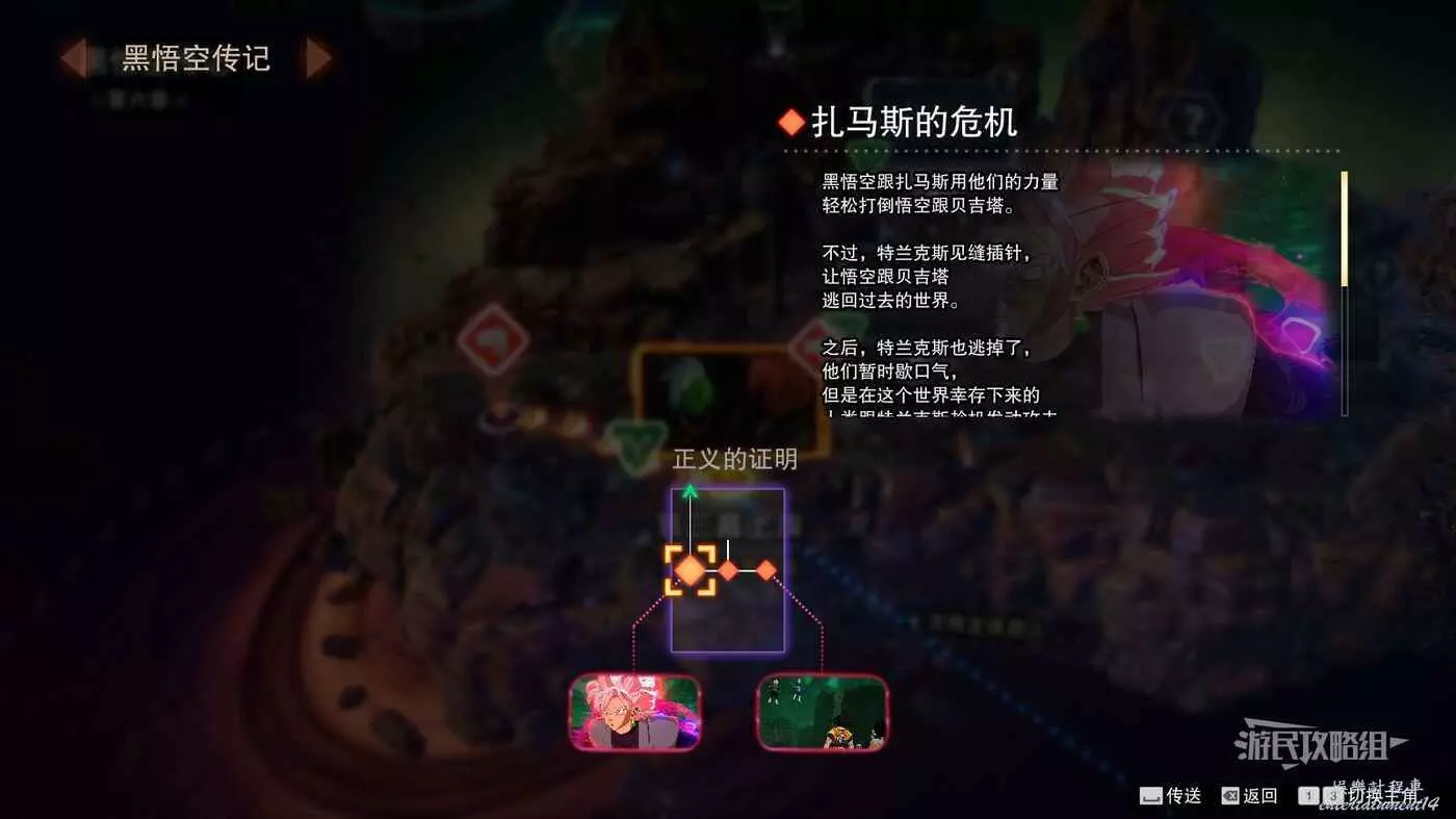步驟3:擊敗貝吉塔和特蘭克斯後進入關卡【兩個人的抉擇】,此戰鬥需要在一般難度下完成,如果降低難度的話,黑悟空超級賽亞人玫瑰和紮馬斯會自動合體,而在一般難度下就可以直接完成戰鬥無需合體。只需在不合體的狀態下擊敗貝吉特和/或特蘭克斯即可解鎖分歧線路。