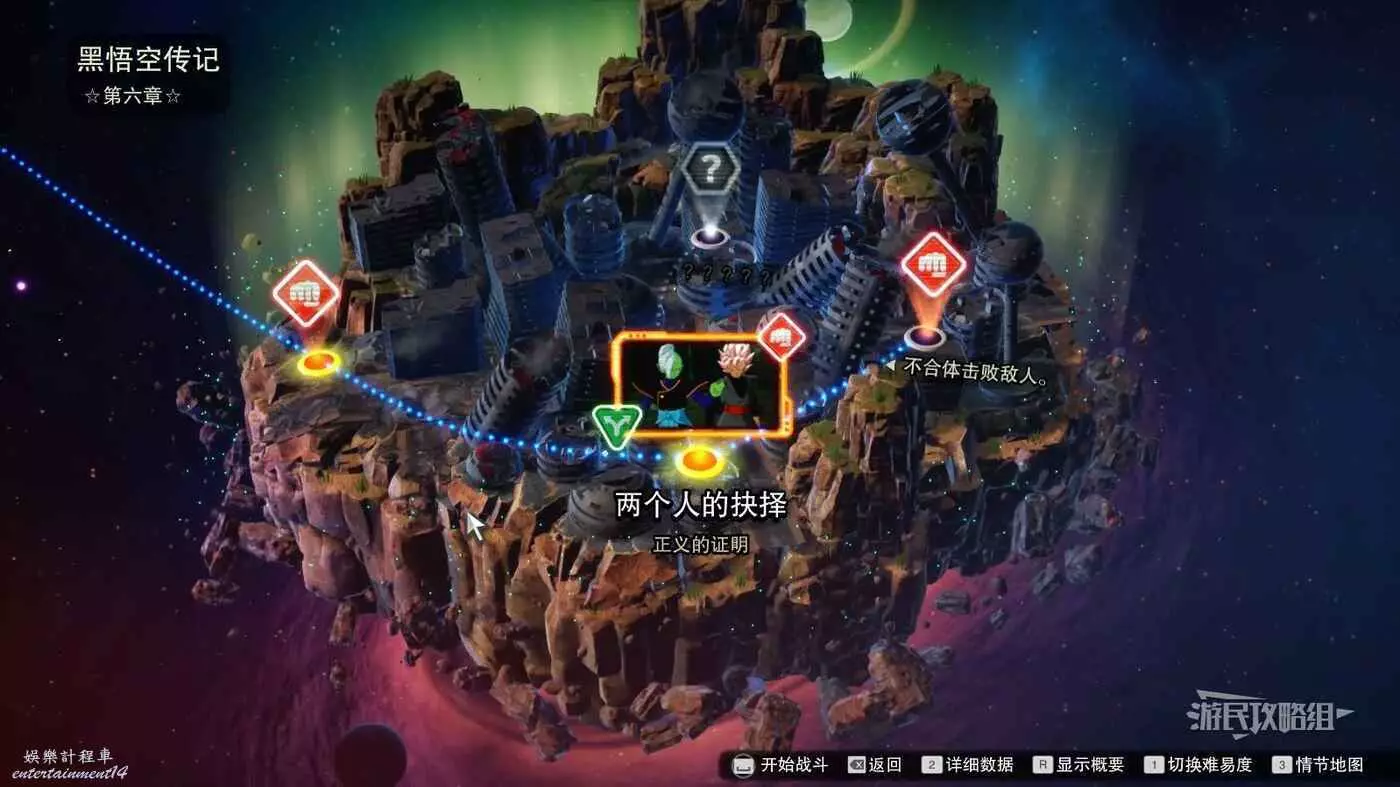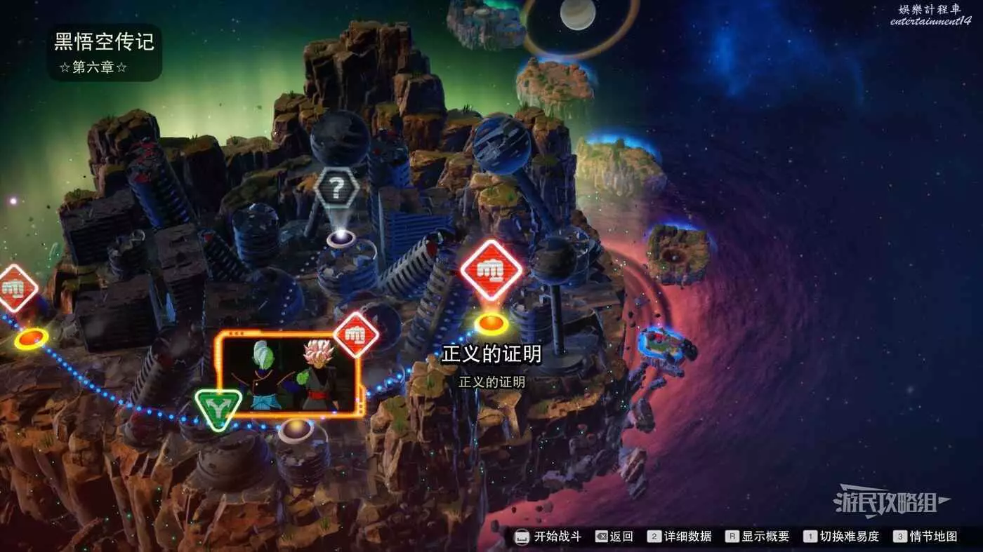 步驟4:進入最後一個分歧線路【正義的證明】後,可以開啟降低難度,擊敗悟空和超級賽亞人之神的超級賽亞人貝吉塔,完成分歧線路。