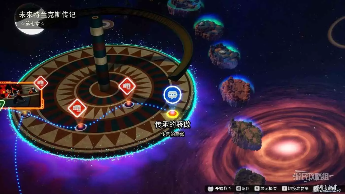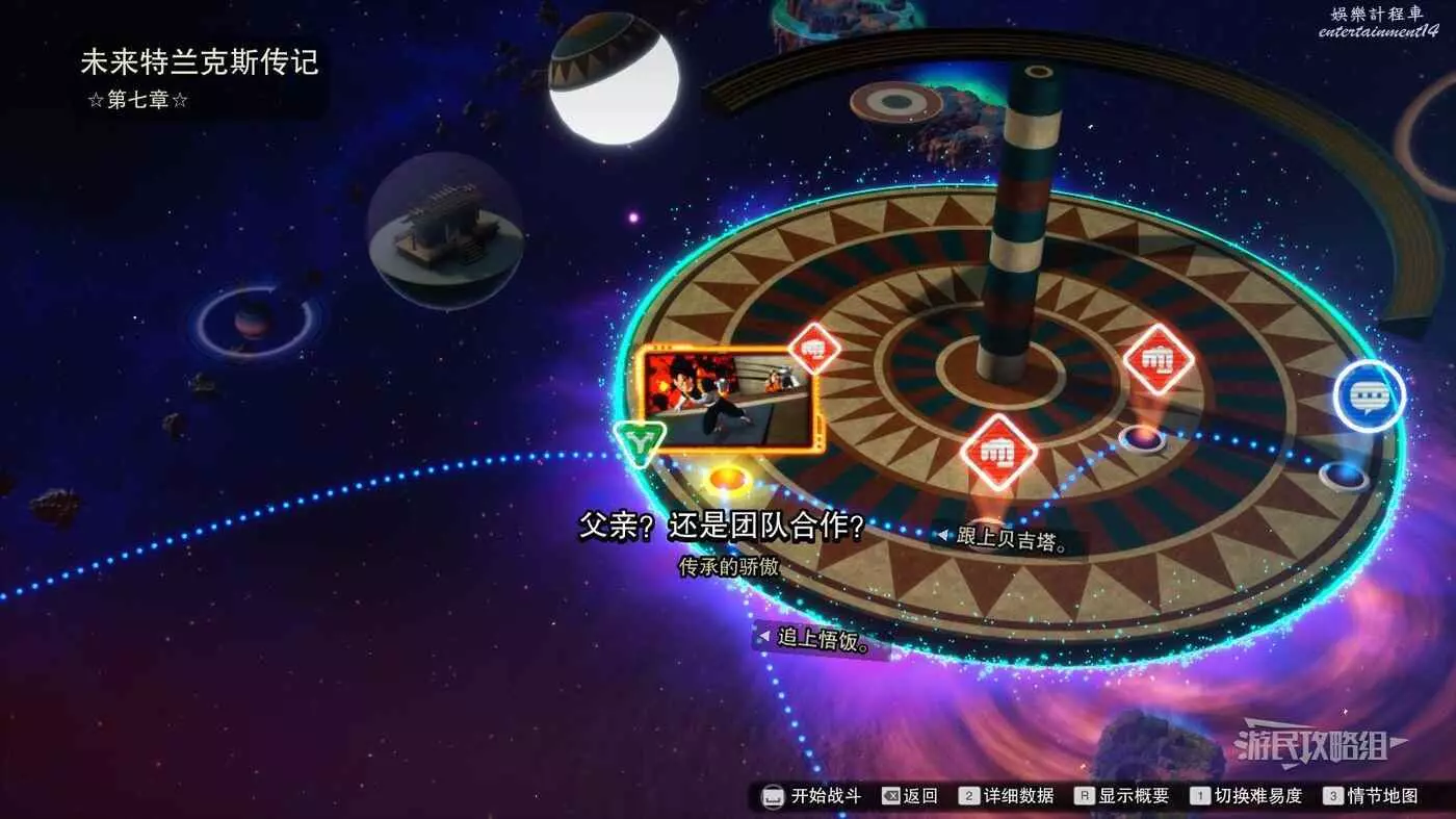 步驟3:完成對話階段【特蘭克斯的願望】進入關卡【父親?還是團隊合作?】,解鎖此獎盃需要選擇選項【追上貝吉塔】觸發與卡貝的戰鬥。