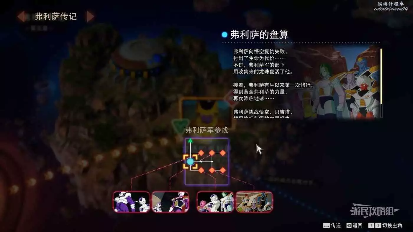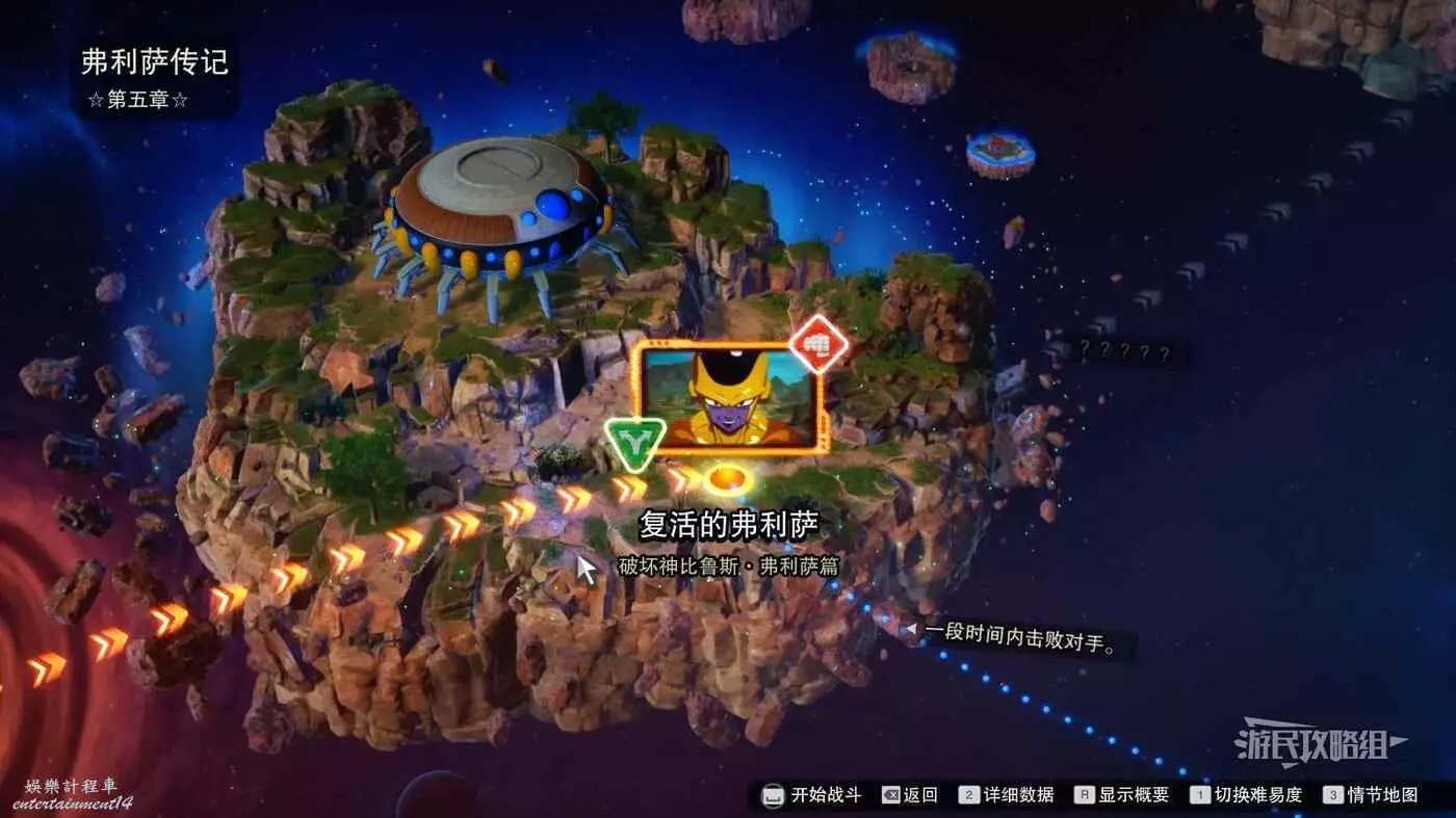 步驟1:以一般難度開啟弗利薩傳記第五章【復活的弗利薩】,需要快速擊敗悟空和貝吉塔。觸發悟空和貝吉塔倒地動畫就表明成功進入分歧路線。