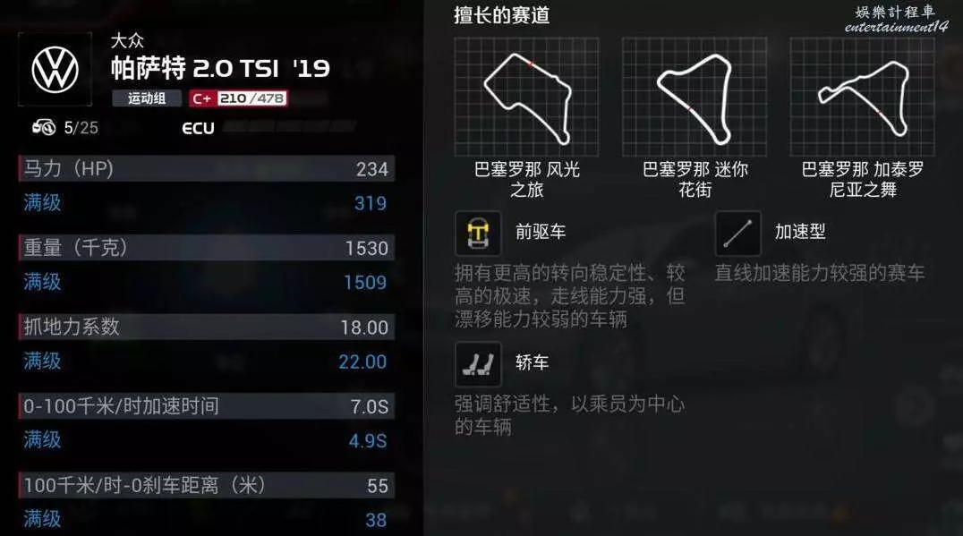 如果你想練習抓地過彎,不妨嘗試運動組的大眾帕薩特2.0,賽道方面則推薦「芝加哥-逆向都市」這類直角彎比較多的地圖。