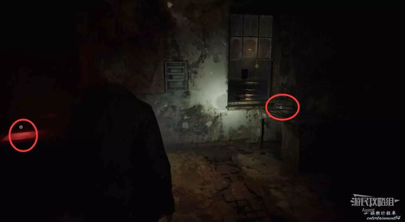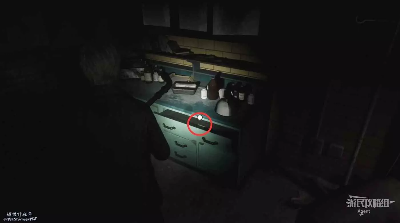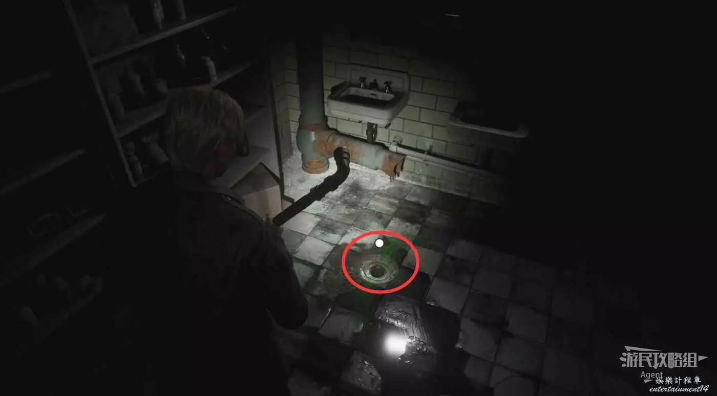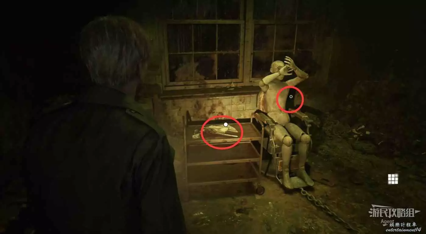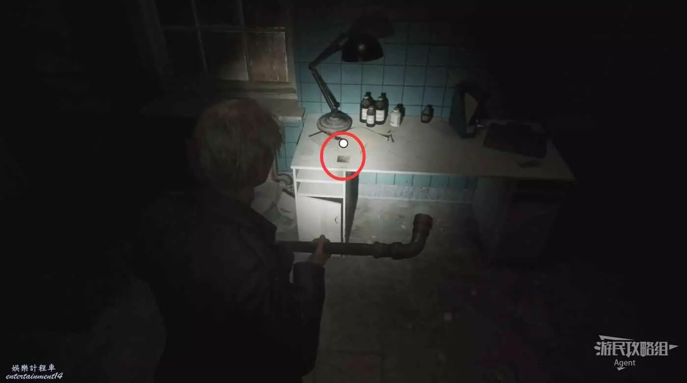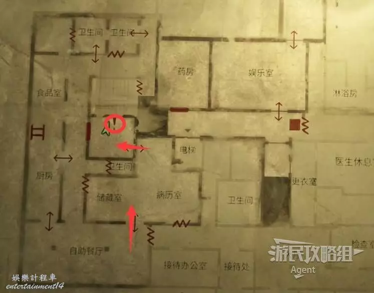 搜刮衛生間、食品室、廚房、自助餐廳,然後經過儲藏室、病歷室,到下圖圈出位置的牆洞裡,拿到【極樂之鑰】。