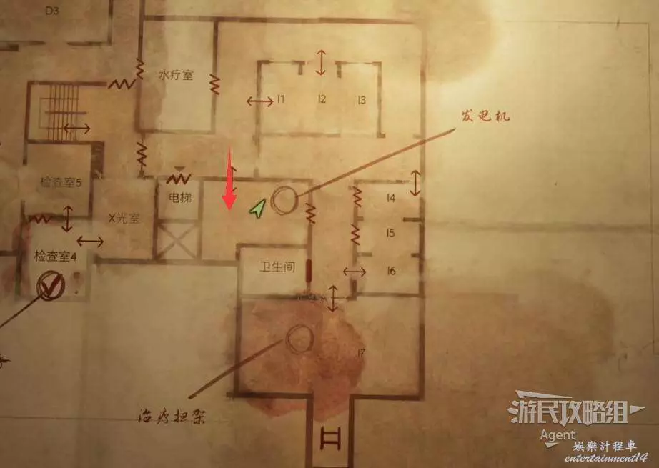 搜刮下I1-I6六個房間,然後到下圖房間裡啟動發電機。