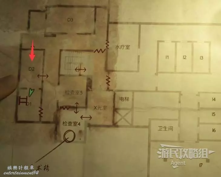 打破牆進入D2,然後到D1爬下梯子到一樓。