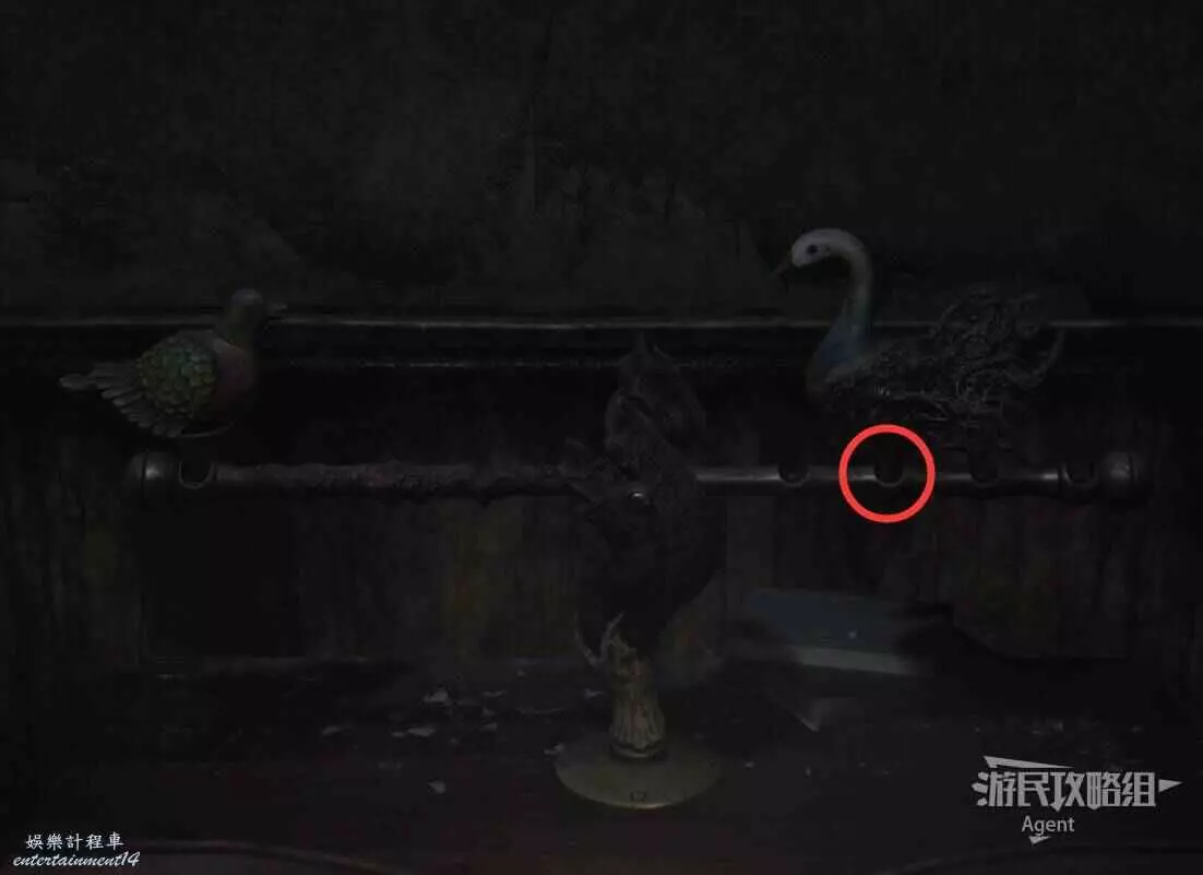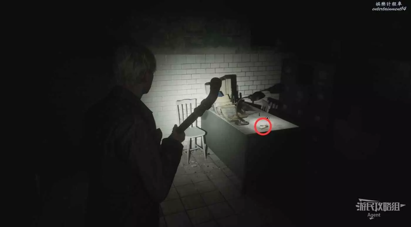 從正門或者打破牆壁都可以進入211室,廚房裡有手槍子彈,裡面房間拿到【木制天鵝的頭部】。