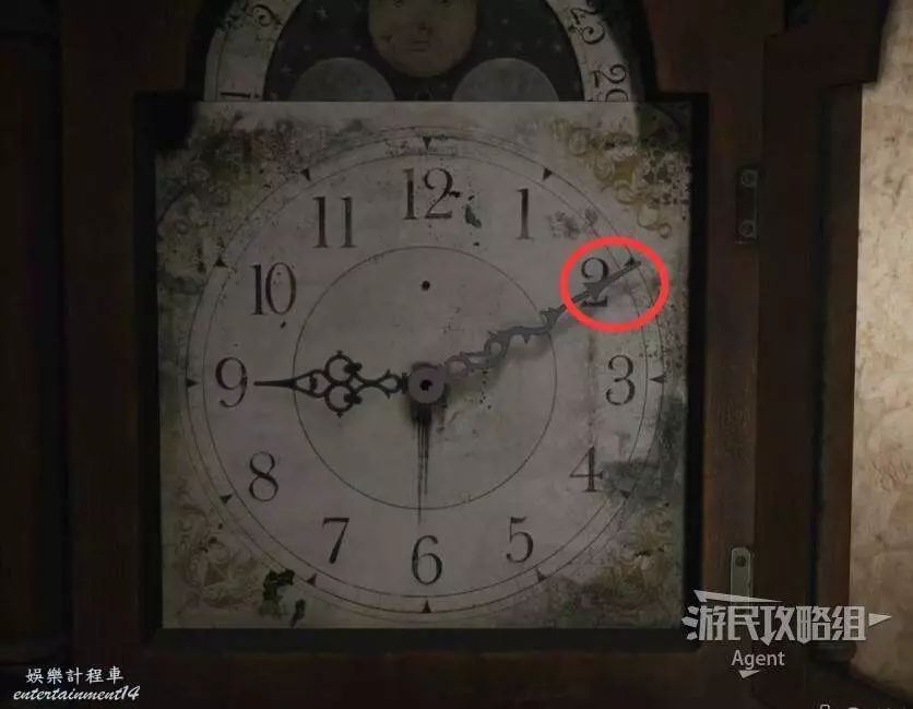 M米爾德麗德對應分針(M也是分鐘Minute的首字母),牆上的分針指向2點方向。