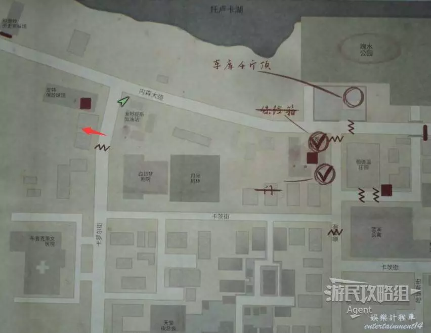 邊搜刮邊往東走,在天堂夜總會旁的車庫,打破牆往南,有個存檔點。