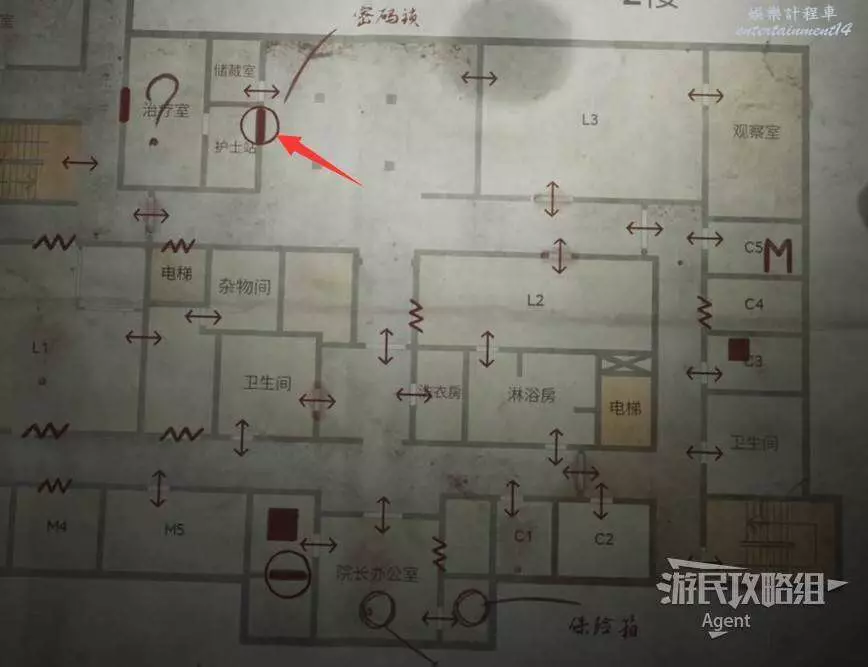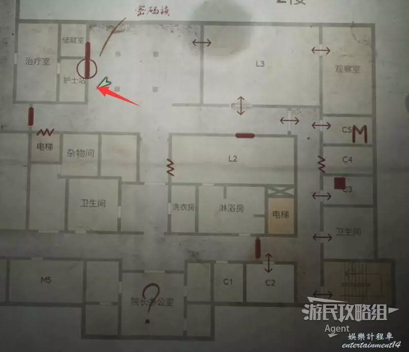 在醫生休息室,拿到【備忘錄】密碼鎖密碼字條,這是護士站的密碼。