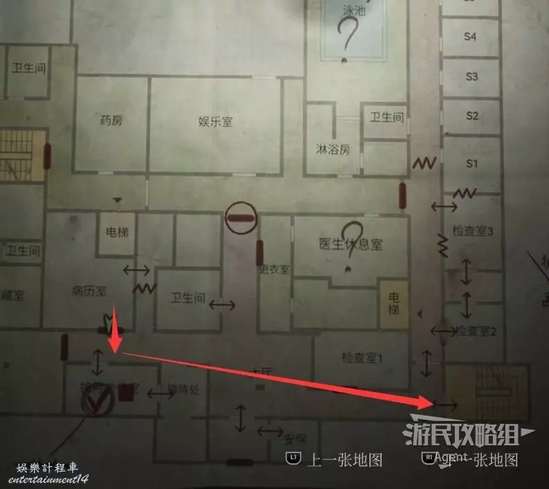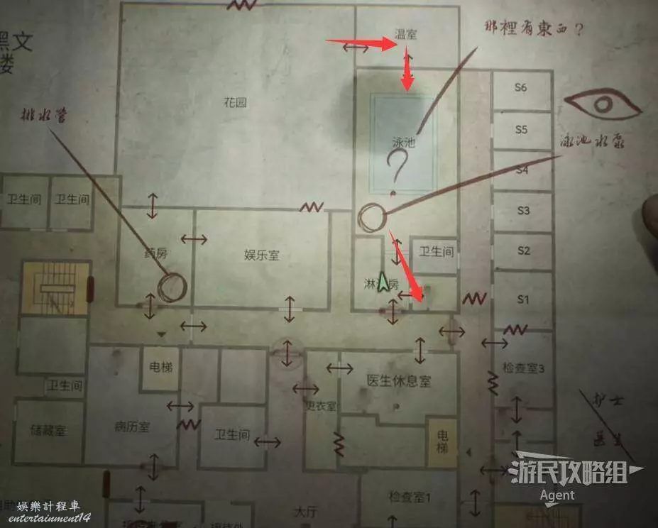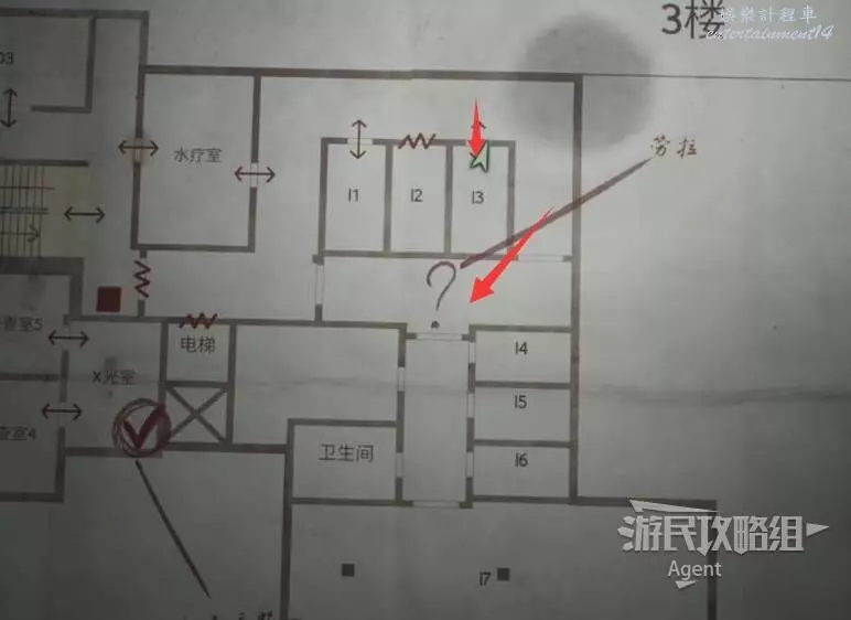走樓梯上一樓,經過檢查室2、檢查室3,在泳池西北角拿到【奇怪的照片】不能讓他們知道,看照片背面寫著“13”。