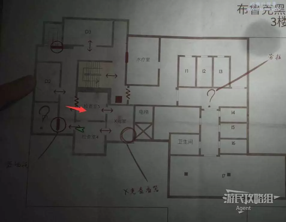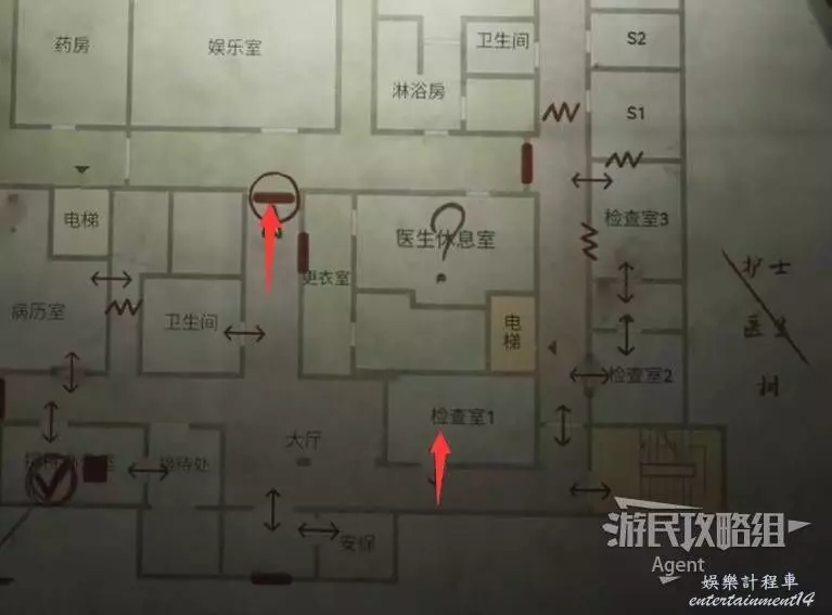 搜刮接待處,牆上拿到【備忘錄】鑰匙櫃字條,提到了檢查室3。