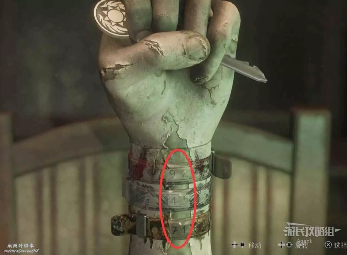 根據提示,右4左37右12,開密碼鎖進入D1,床上拿到【髒手腕帶】。