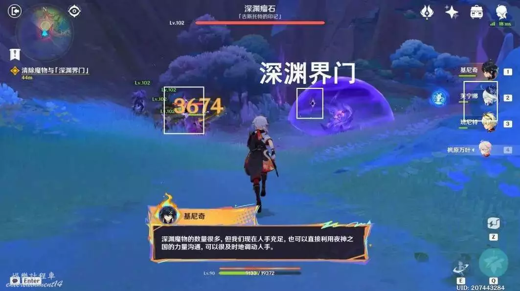 往地圖的北方向走,利用元素攻擊破壞3處「深淵界門」
