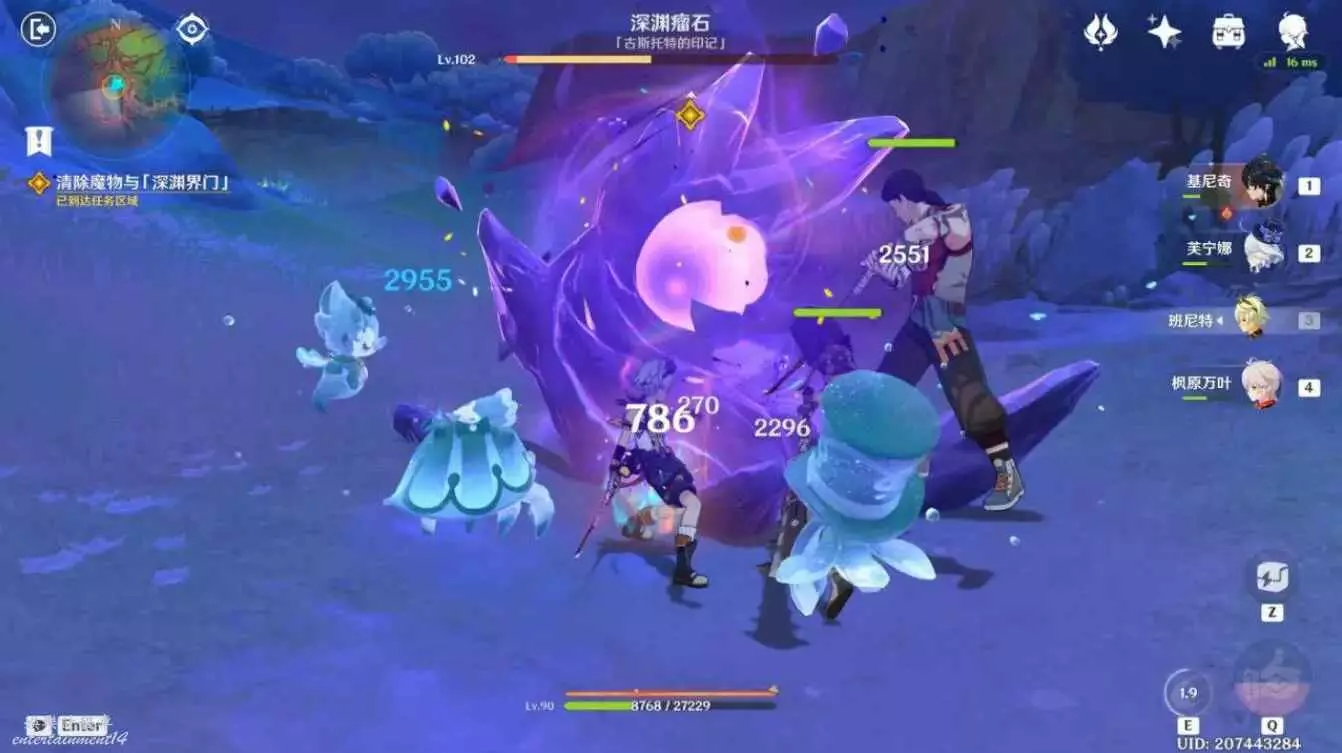 往地圖的東方向走,利用元素攻擊破壞2處「深淵界門」