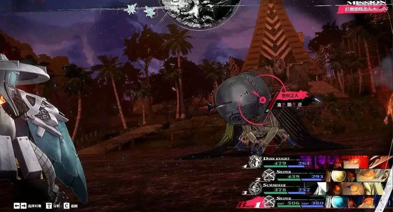我方第一次迴圈:尤法必定一動,先獅鷲打風弱;二動狙擊手主角往龍騎士身上打降防彈,三動狙擊手斯特羅爾換手,四動霍肯伯格惡作劇(我自己打的時候是加了3豆)。