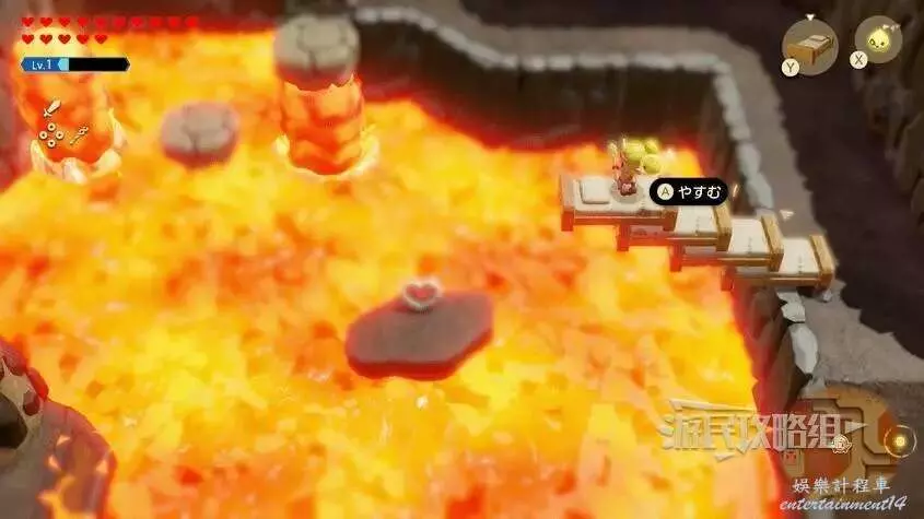 參考上文地圖標記位置,前往奧爾汀火山懸崖上方,然後利用浮熔岩穿過岩漿,走到灰色平台盡頭拾取心之碎片。